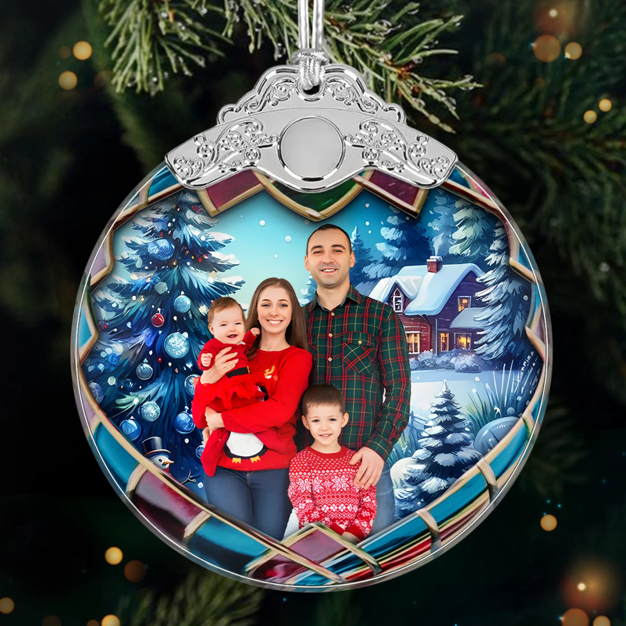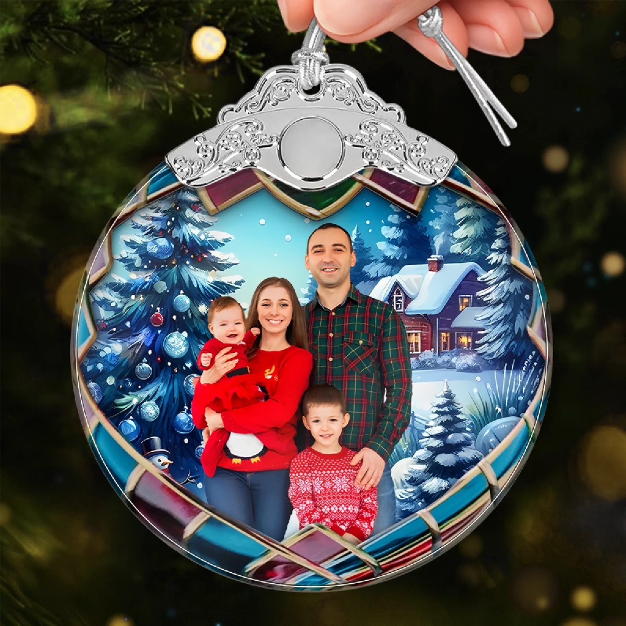 Stained-glass effect adds classic charm and festive elegance.
